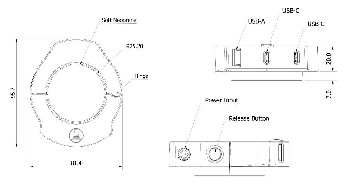 The top bracket can be screwed into the work surface or attached to our Cable Baskets.