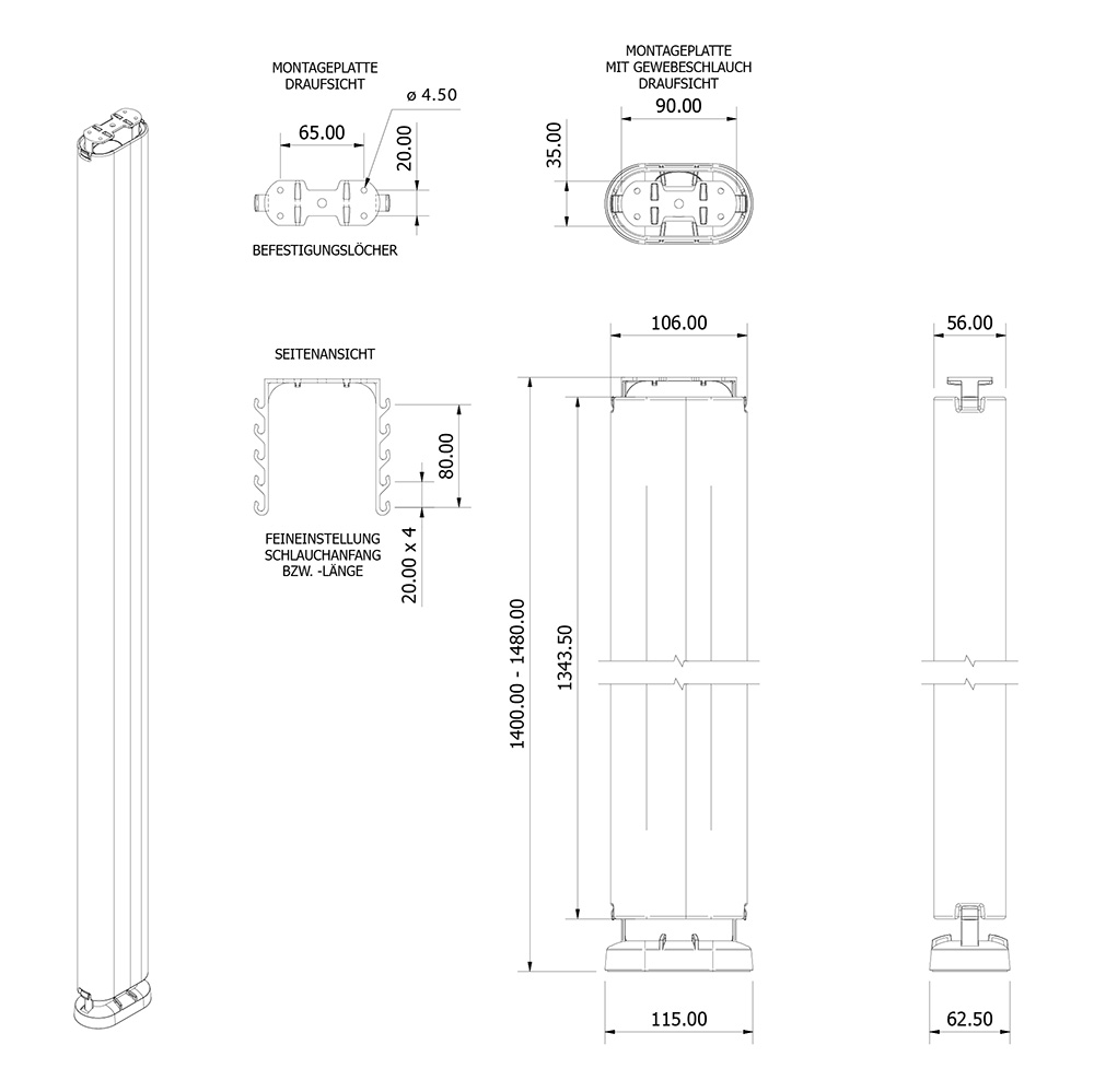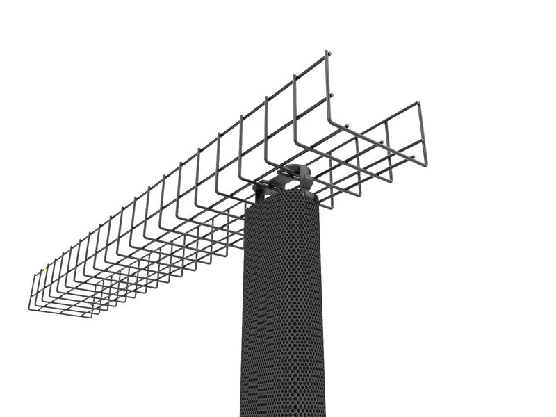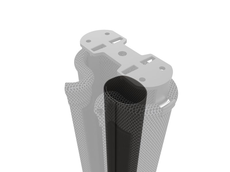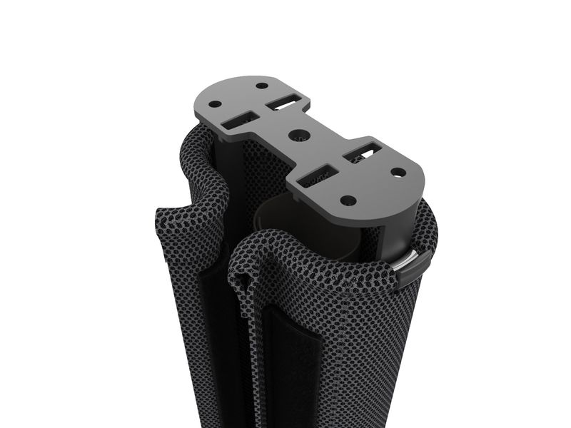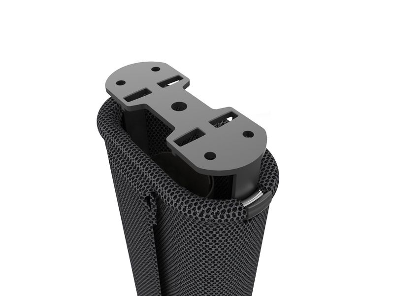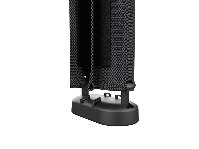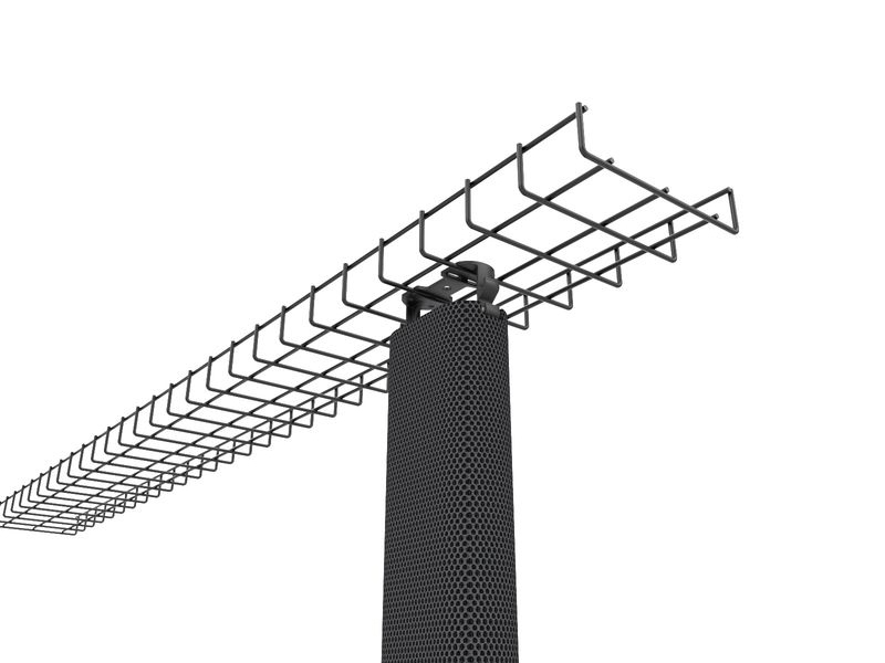 Im Inneren verfügt die Mesh+ Kabelführung über eine Trennung von Strom- und Datenkabeln. Die schwere Endplatte sorgt für Halt an der gewünschten Bodenposition. Dabei schützt ein Neopren-Polster empfindliche Böden vor Beschädigungen.